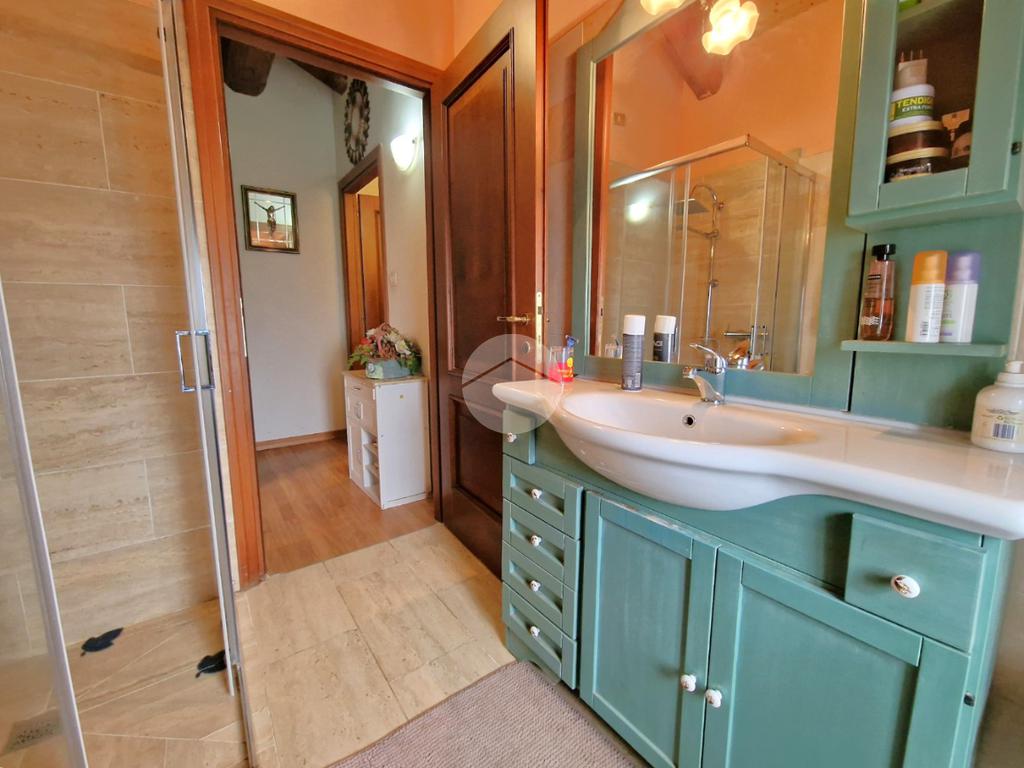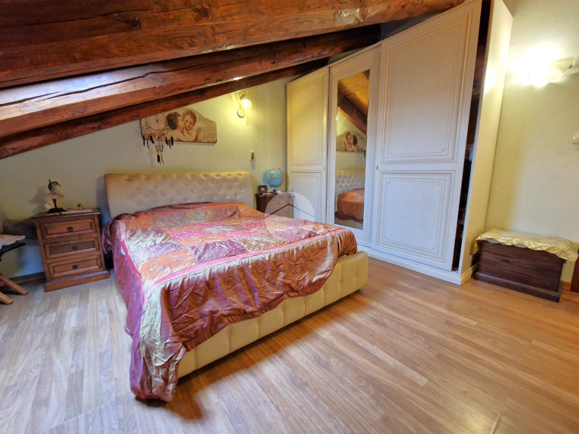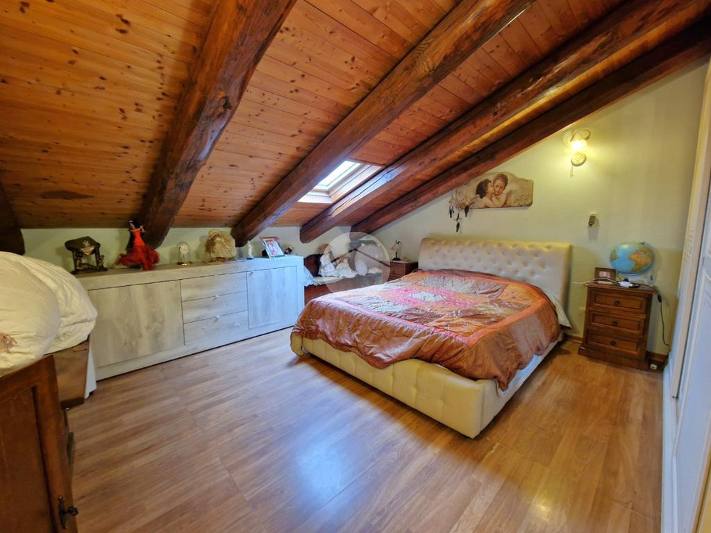 Salendo al piano superiore troviamo la zona notte, caratterizzata da due camere mansardate, intime e dal sapore caldo e accogliente, ideali come camera matrimoniale e cameretta o studio. Anche qui è presente un secondo bagno finestrato dotato di box doccia, pratico e ben rifinito.