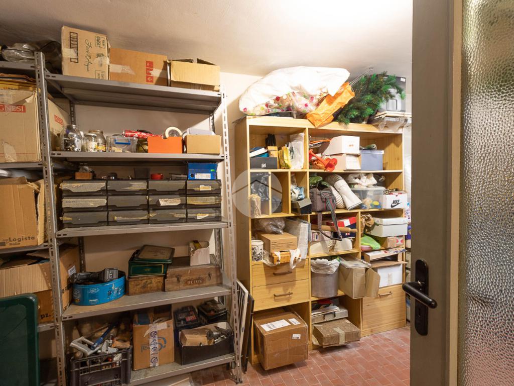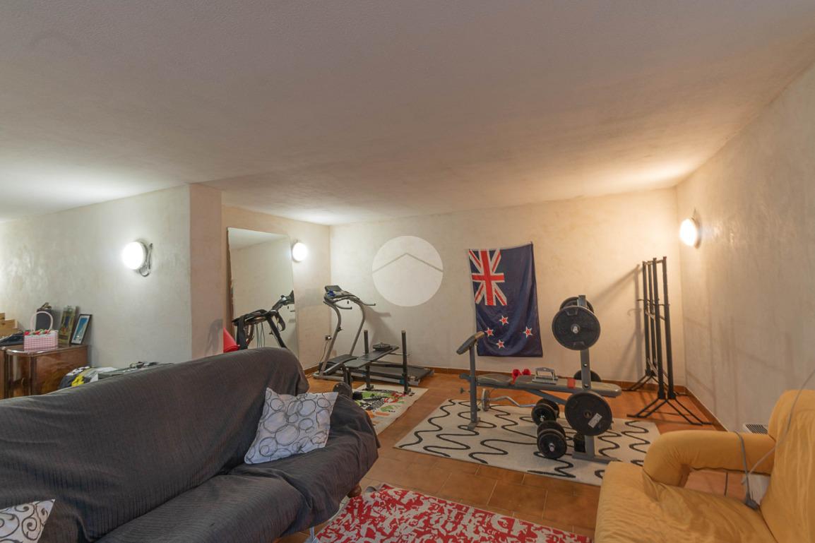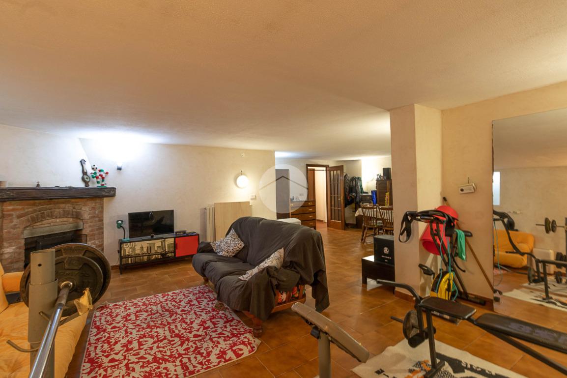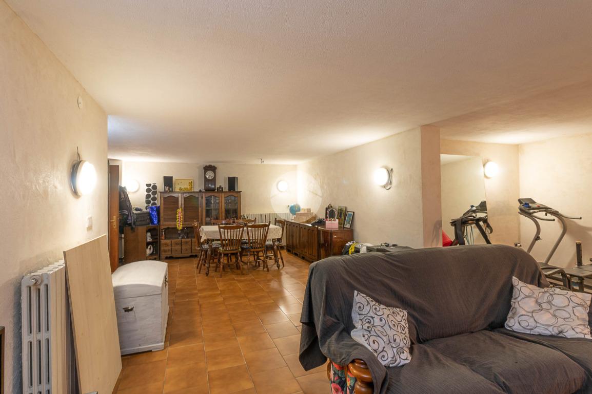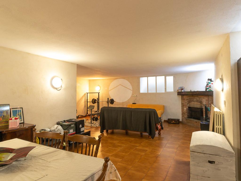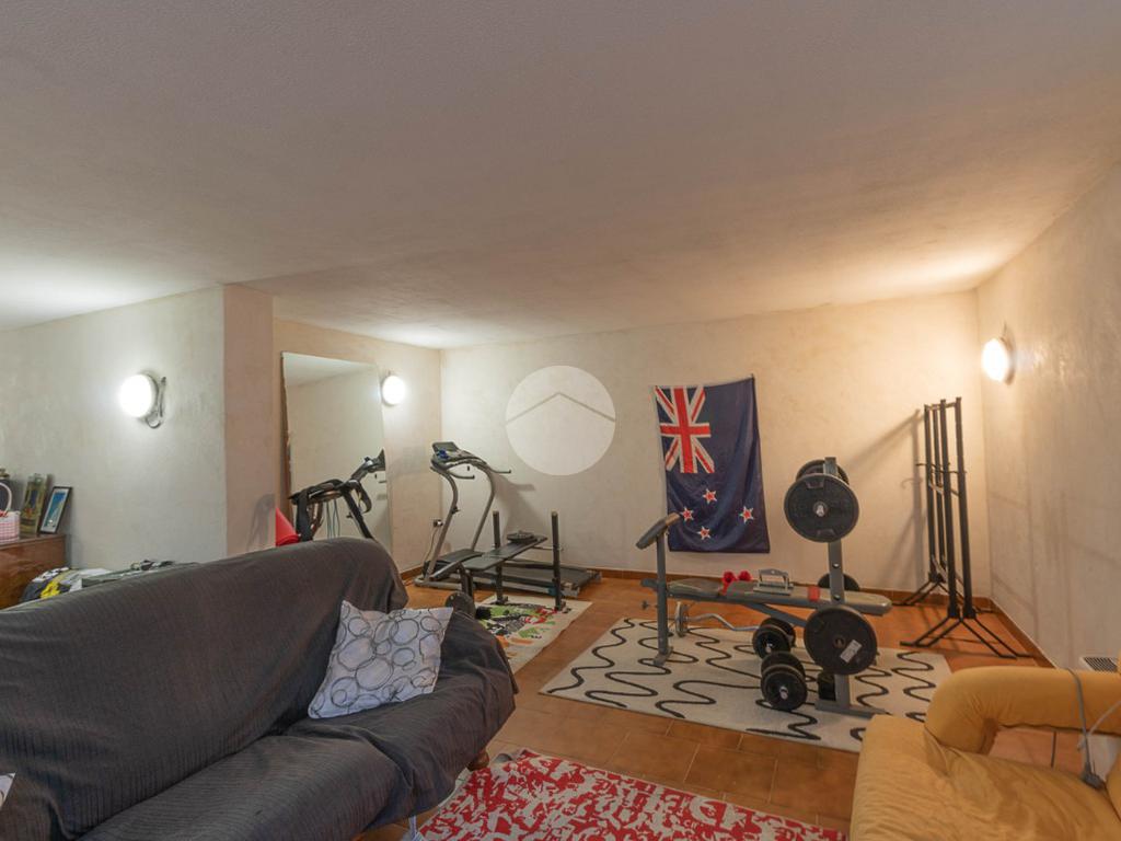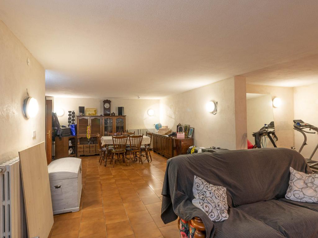 Al piano interrato troviamo una grande tavernetta con camino, perfetta come spazio hobby o area relax, un secondo bagno con box doccia, una cantina e un ampio box auto doppio.